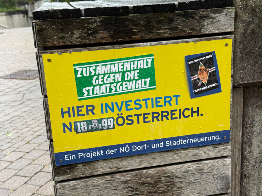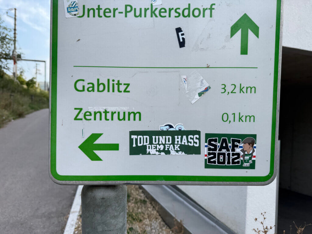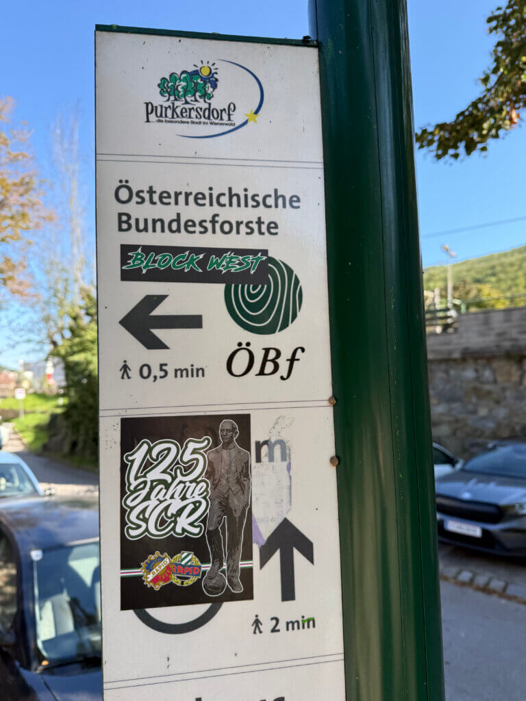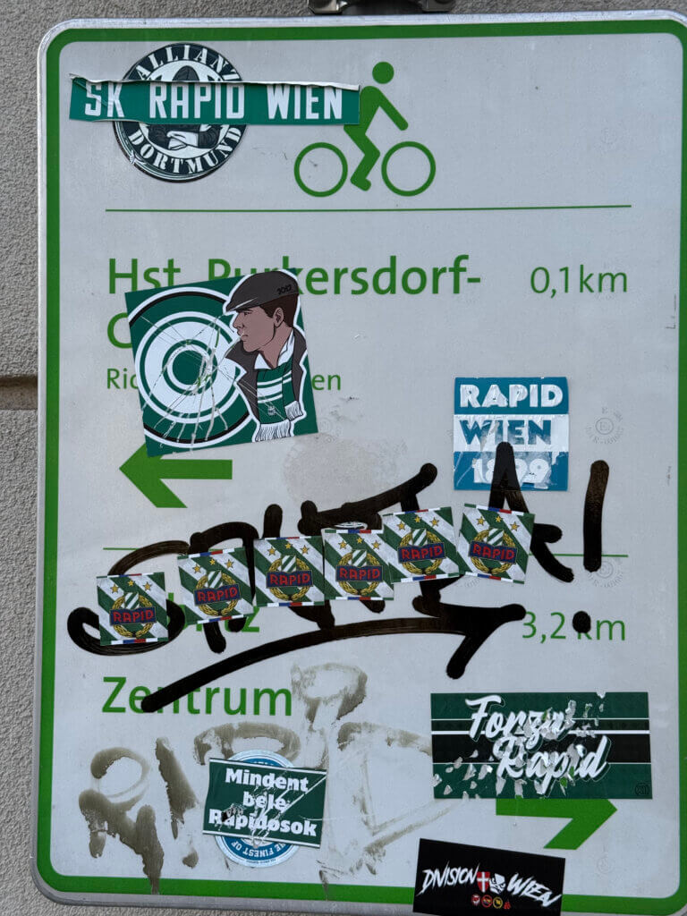 Wer in letzter Zeit durch die besondere Gemeinde im Wienerwald spaziert ist, dem sind sicher die unzähligen, alle fünf Meter angebrachten, tiefsinnigen Fußball-Sticker aufgefallen. Zahlreiche Sinnsprüche, wie „Zusammenhalt gegen die Staatsgewalt“ oder „Austria Wien totschlagen“ zieren und dominieren den öffentlichen Raum und laden zum Randalieren und Zünden von Böllern ein. Besonders für Kinder im lesefähigen Alter inspirierend und berührend zugleich.